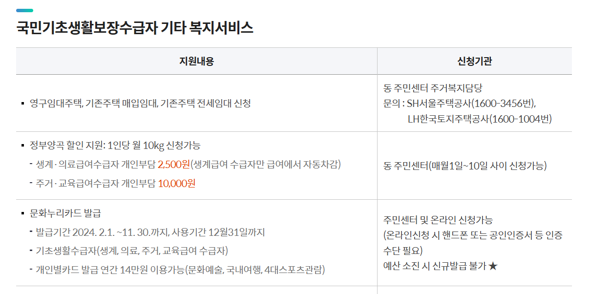 기초수급자 혜택 정리